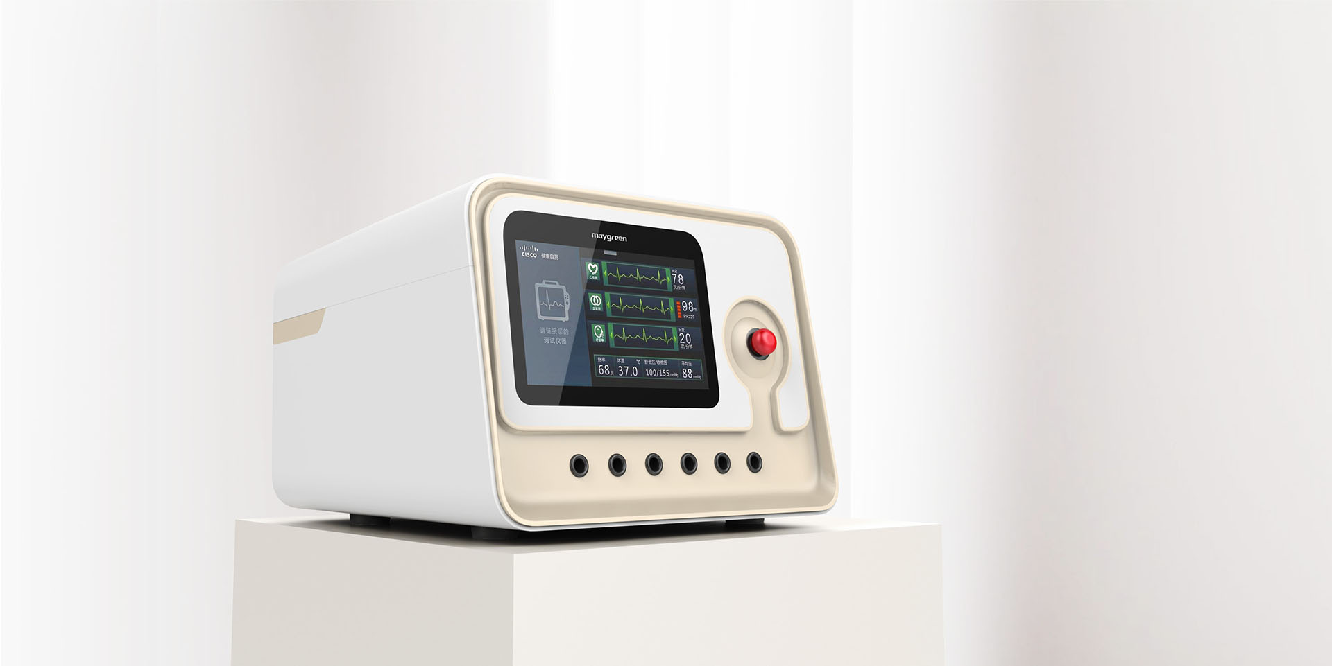 手術臺式設備應用于醫療手術過程中手術設備附件的放置及收納,在設計上,采用色塊將功能明確分區,明了清晰,造型上局部特點的點綴讓產品煥然一新。