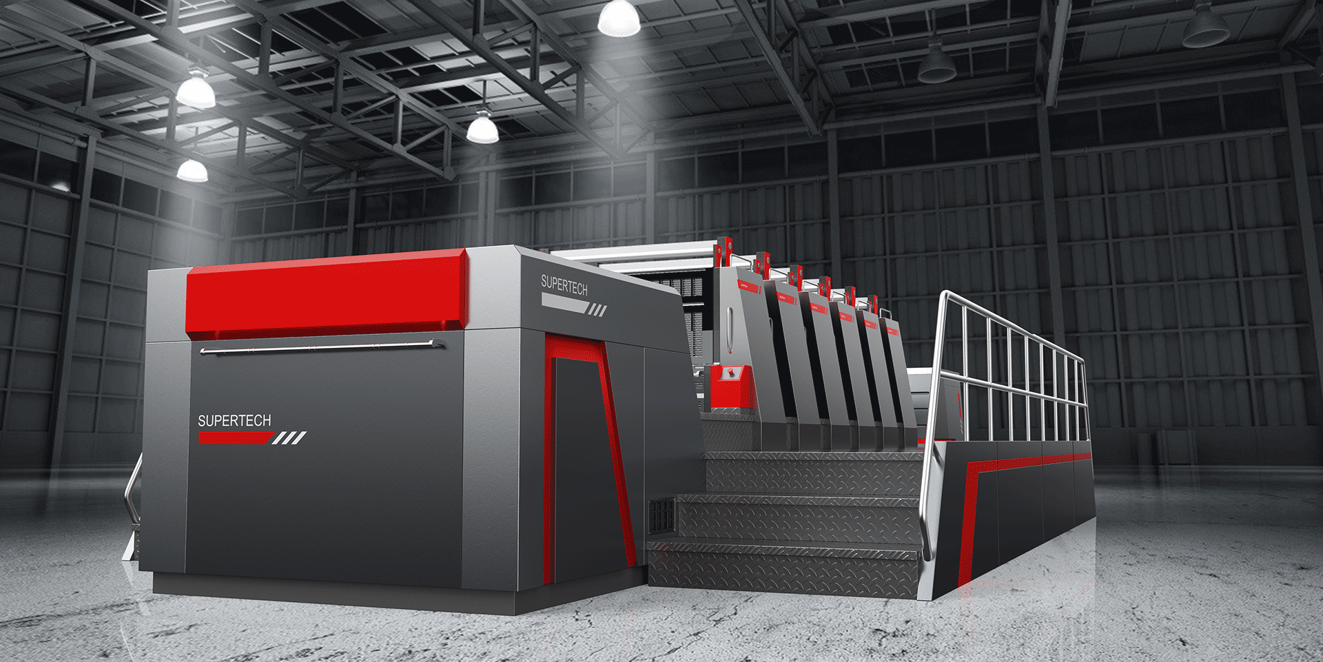 這款膠印機也叫平版印刷機,用于印刷高檔次商業印刷品、包裝印刷品,是現代紙張印刷的主流。外觀設計時設計師打破傳統呆板的機械造型,運用簡約的斜線條裝飾,提升產品品質感與科技感,配色上提升品牌識別性。