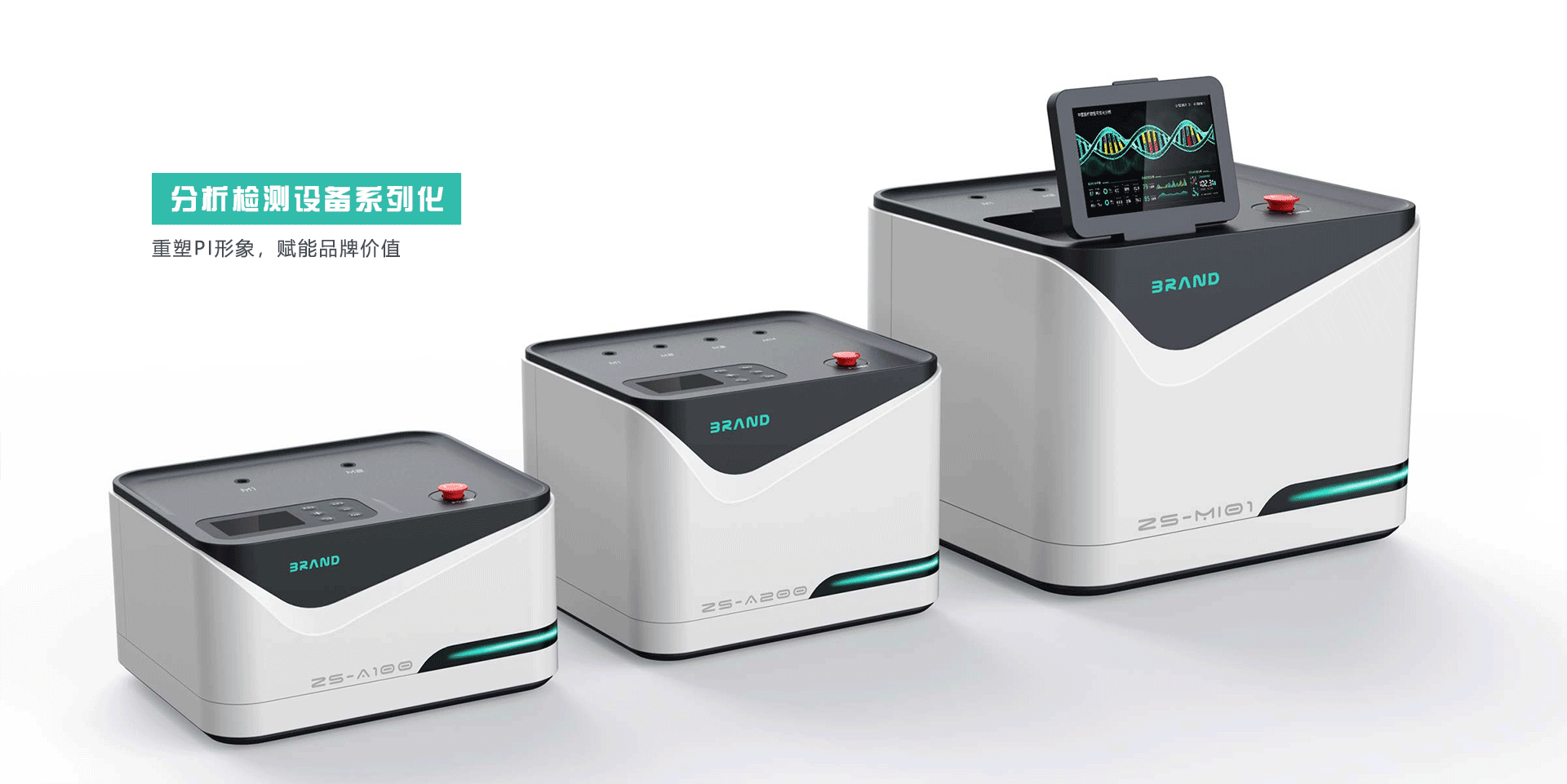 設計這套分析檢測設備時,我們從產品PI的角度出發,進行設計研究,提取品牌元素進行推敲演化設計,通過產品面與面之間的關系,將提取的設計元素以流暢線條的形式貫穿產品,以常規工藝實現批量化的良品加工,達到從設計角度提升品牌形象的目的。