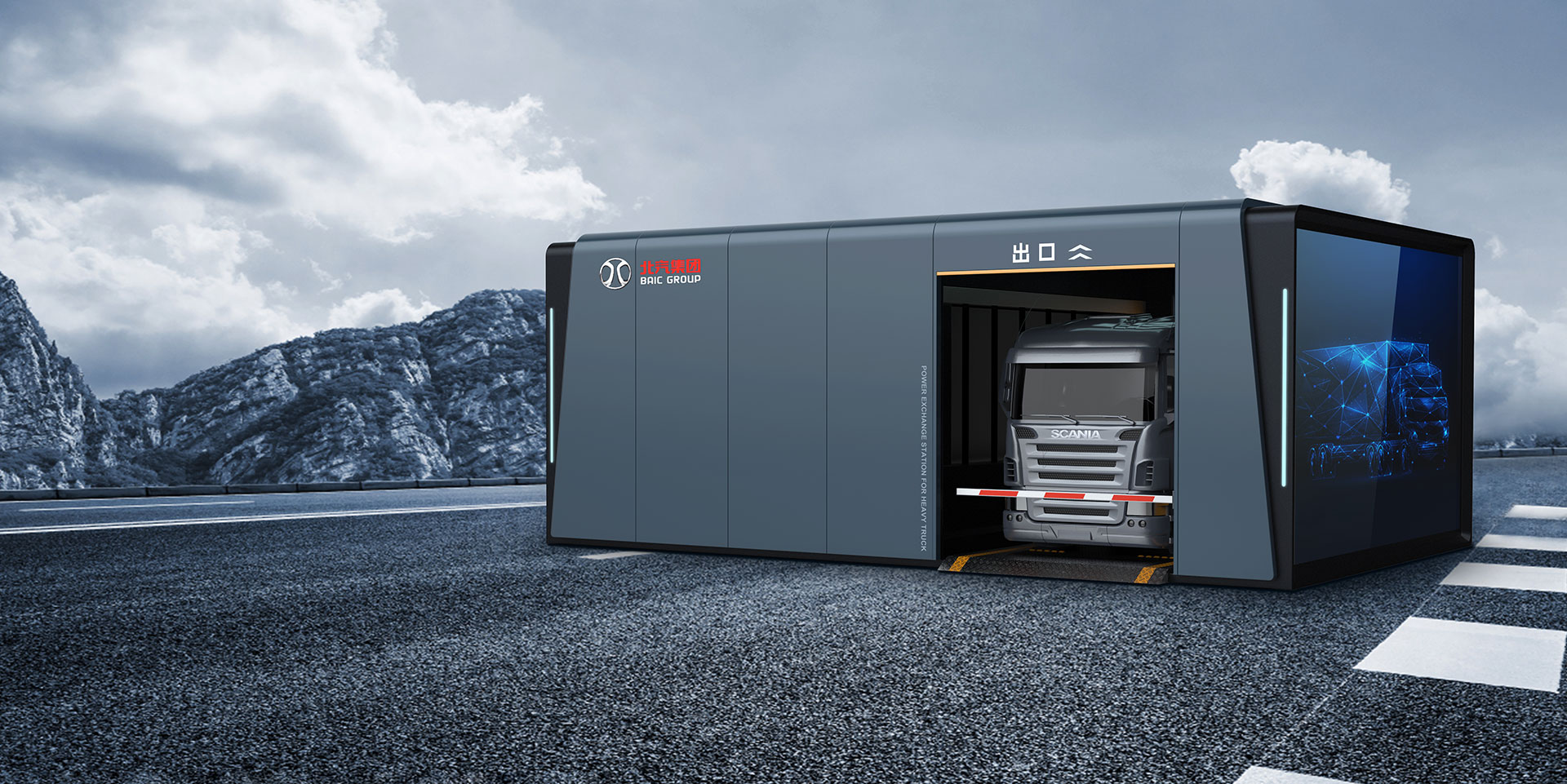 整體造型大氣穩(wěn)重,科技感強(qiáng)。簡(jiǎn)約現(xiàn)代化的外觀能融入不同環(huán)境。進(jìn)出口垂直,車輛進(jìn)出換電站時(shí)能順暢移動(dòng),提高操作效率。換電站兩側(cè)各一塊液晶屏幕可以實(shí)時(shí)顯示換電站的電量使用情況以及投放廣告。