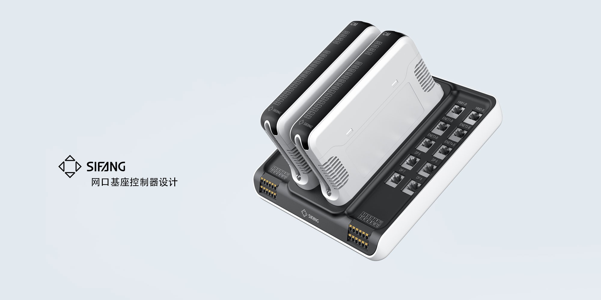 該產(chǎn)品主要為中央處理器,具有可編程能力,完成數(shù)據(jù)采集與處理,實時控制和調(diào)節(jié),事件檢測和發(fā)送數(shù)據(jù)通信,自診斷和輸出保護等智能控制功能。工業(yè)設(shè)計簡約、專業(yè),方便攜帶,采用黑白機身設(shè)計與插入的可編程網(wǎng)卡的配色相呼應(yīng),將產(chǎn)品的功能區(qū)和底部分隔開,符合大眾的審美,同時增強了產(chǎn)品的辨識度。