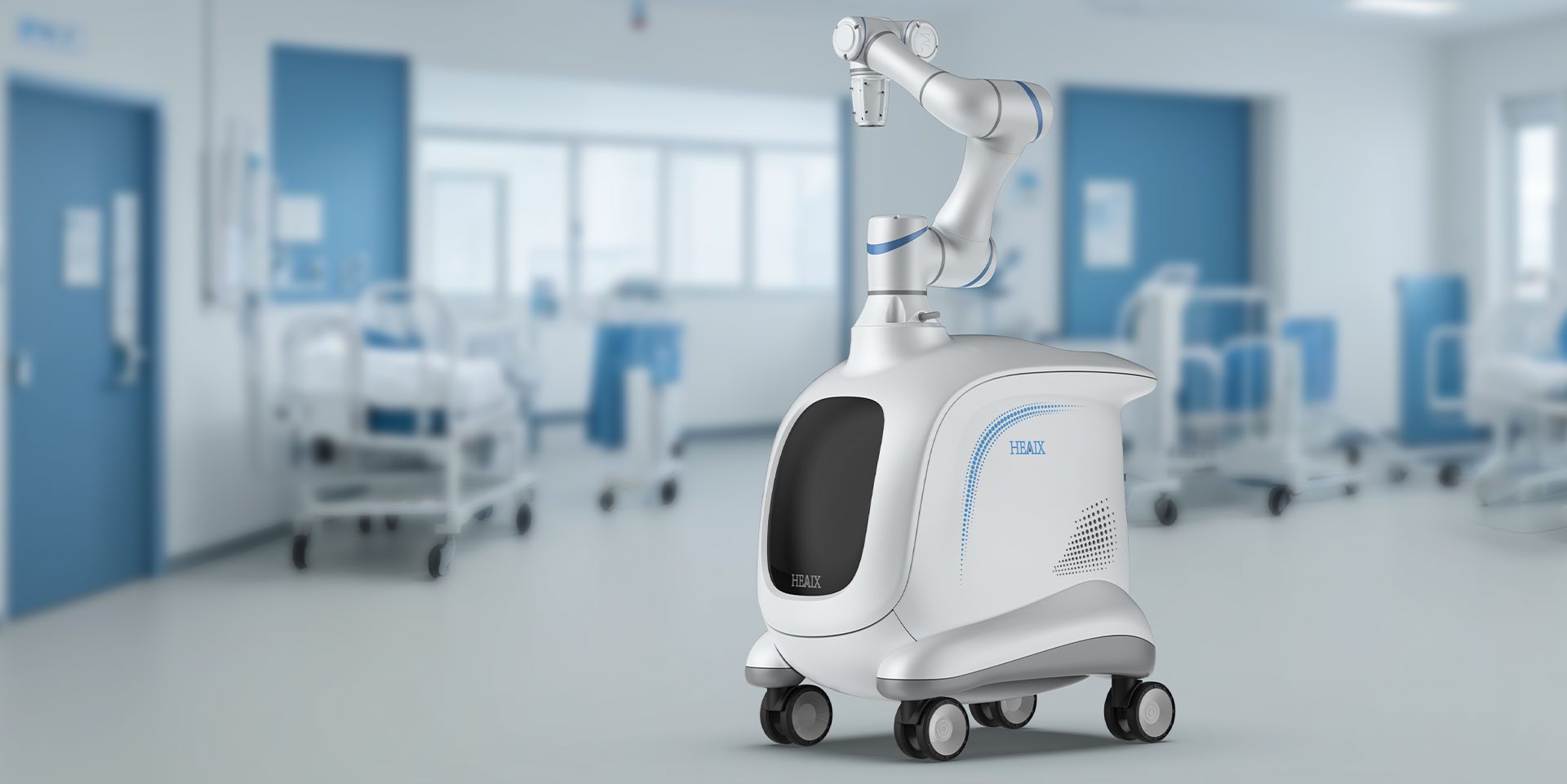這款骨科手術(shù)機(jī)器人整體設(shè)計(jì)簡潔大方,線條流暢,彰顯科技感與專業(yè)感。機(jī)身主體采用純凈的白色,這一經(jīng)典的醫(yī)療色彩,不僅傳遞出潔凈、安全的理念,也與醫(yī)院的整體環(huán)境相適配,給患者帶來心理上的舒適與安心。在白色基調(diào)之上,點(diǎn)綴以藍(lán)色線條,藍(lán)色象征著冷靜與智慧,為機(jī)器人增添了一份靈動與科技氛圍。